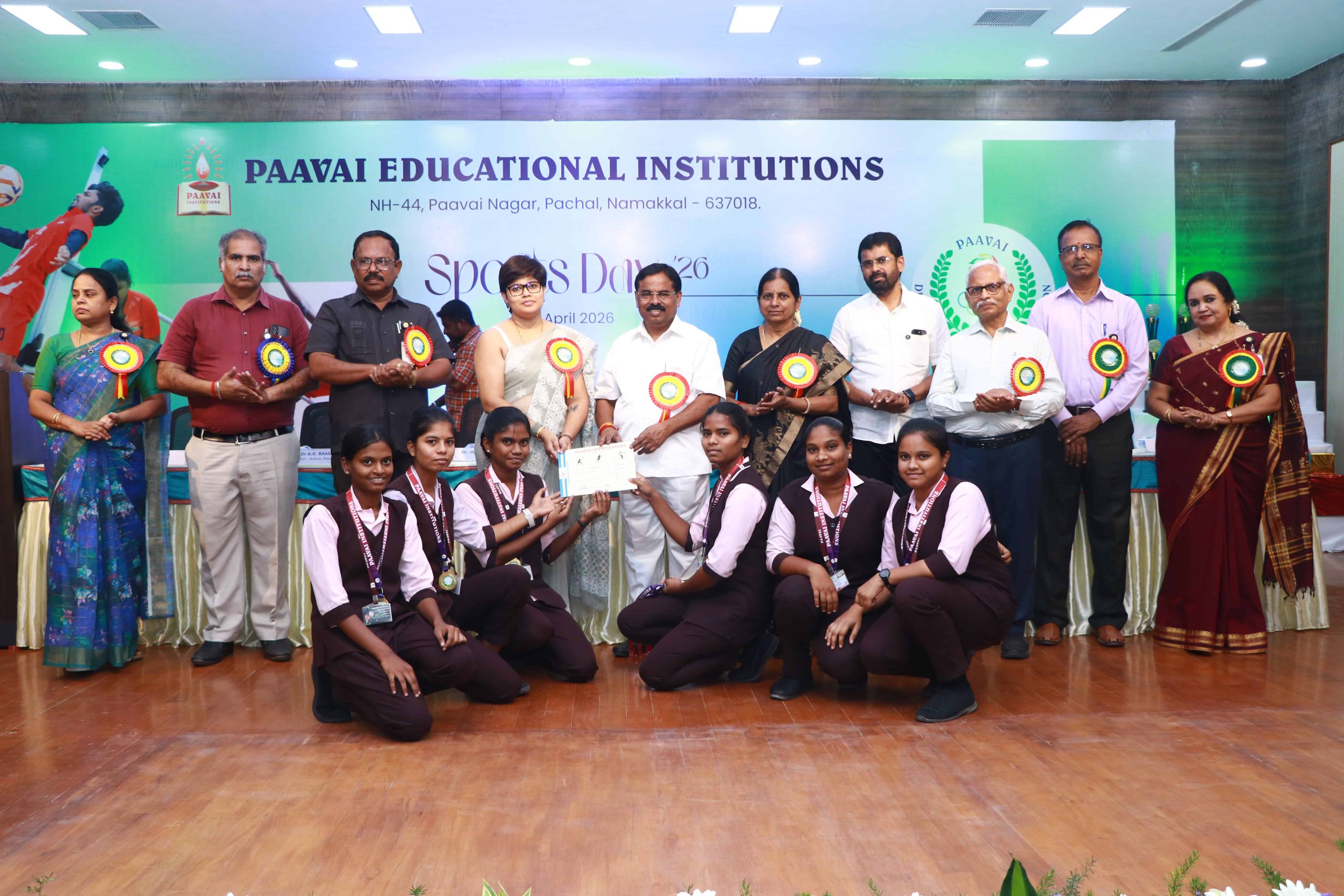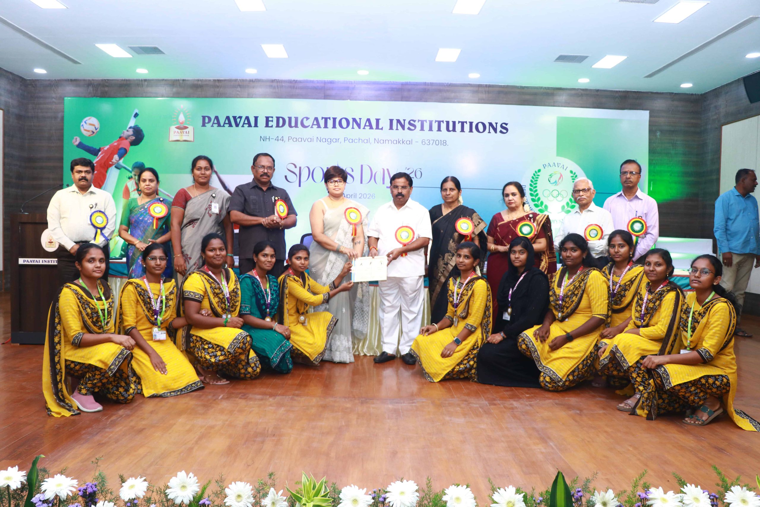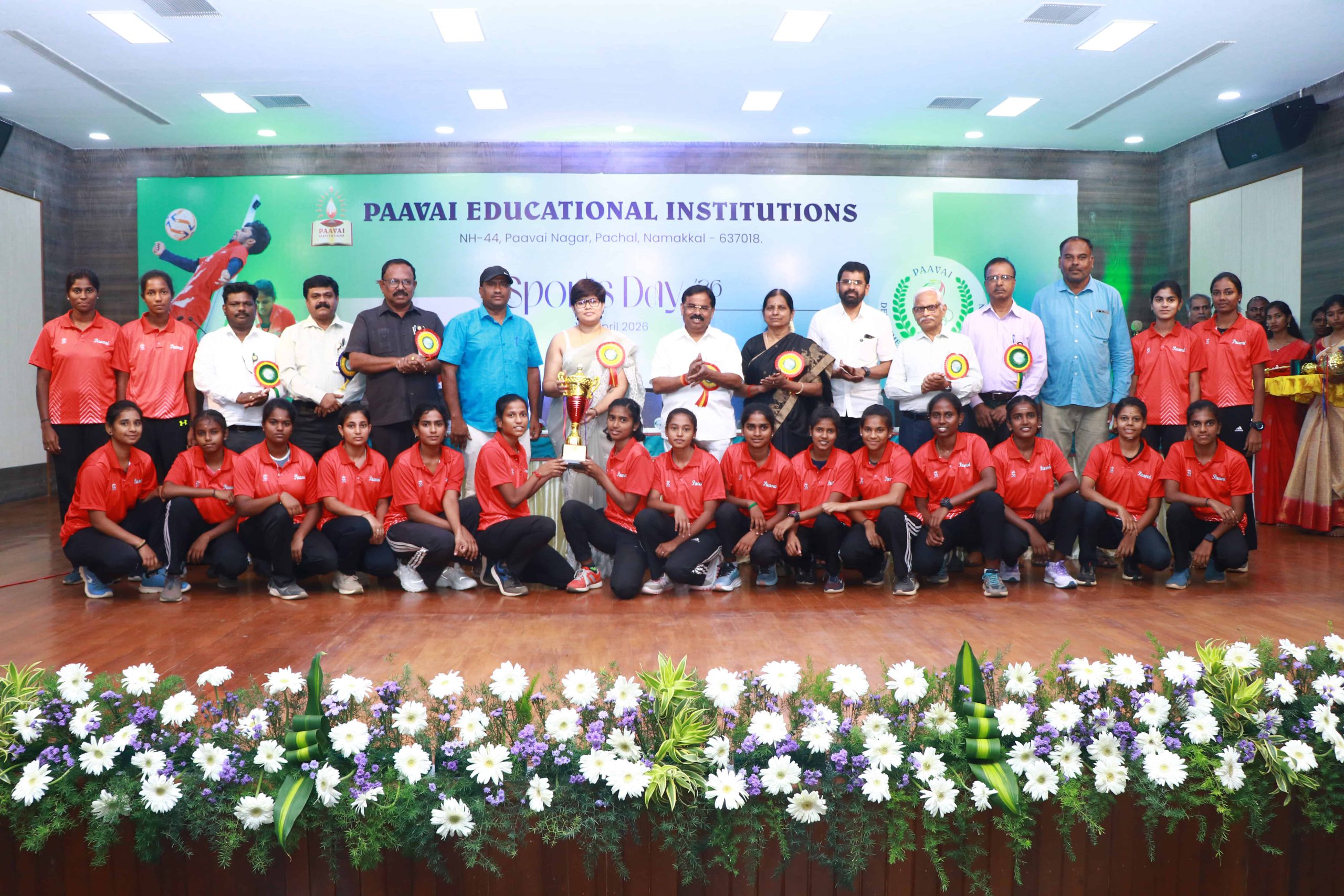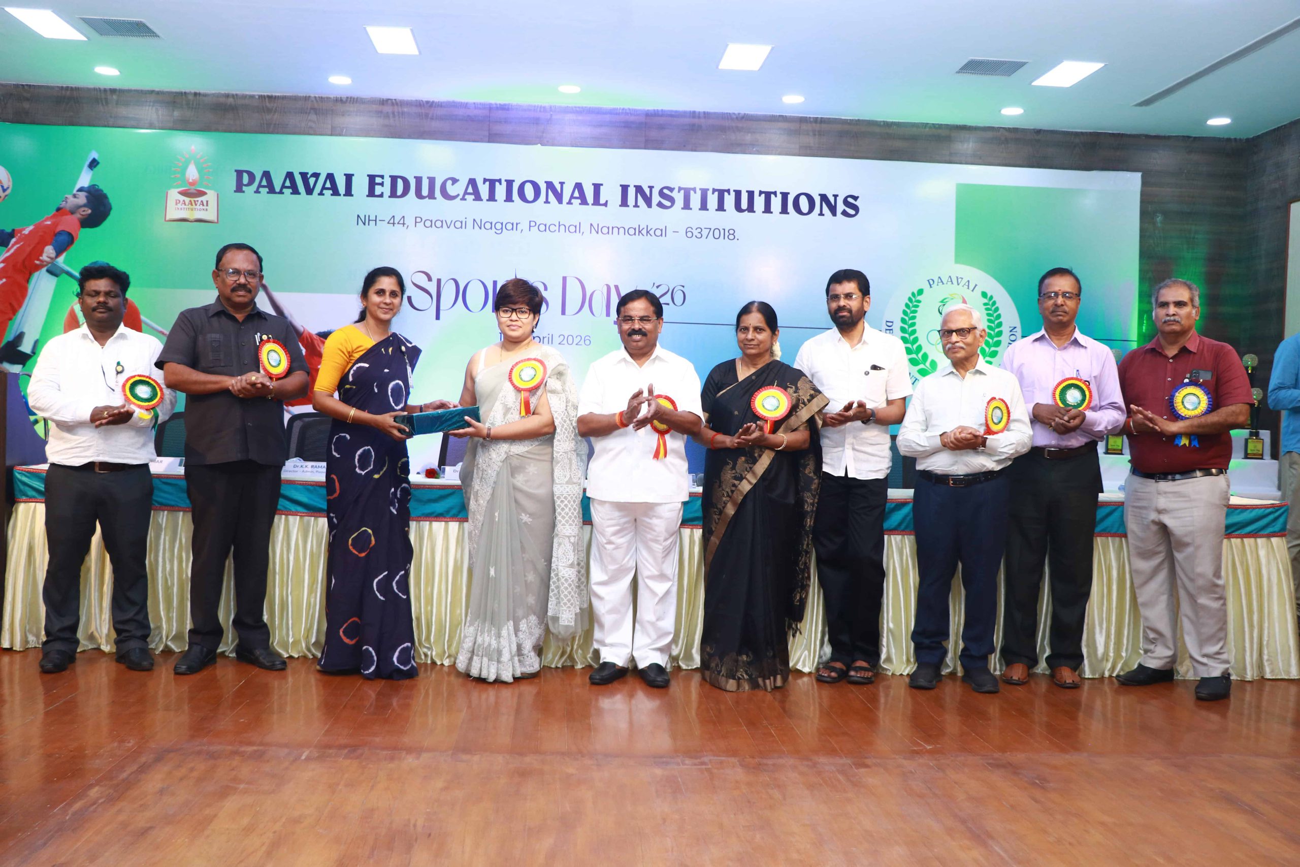 The Sports Day celebration was held at Paavai Educational Institutions. The Founder and Chairman of Paavai Educational Institutions, Shri CA N. V. Natarajan, presided over the function and delivered the presidential address.